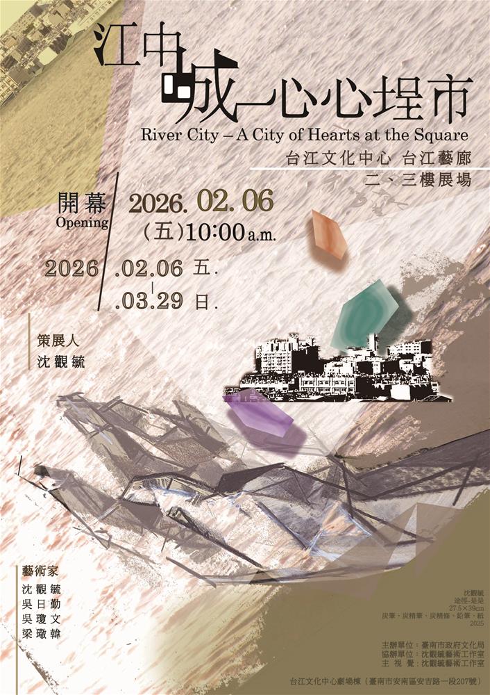 「江中城—心心埕市」聯展將於2026年在台江文化中心場館,為台江地區、安南地區以及喜愛藝文活動的大眾,建構出屬於在地居民的藝廊空間。